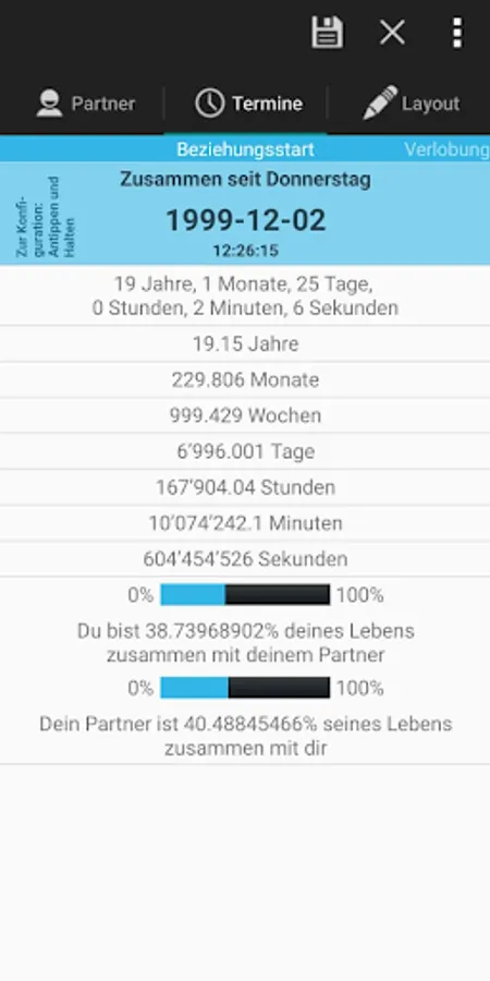 Never forget anything about your LOVE (Duration of the relation, Date of marriage, date of first kiss, birthday, ...)