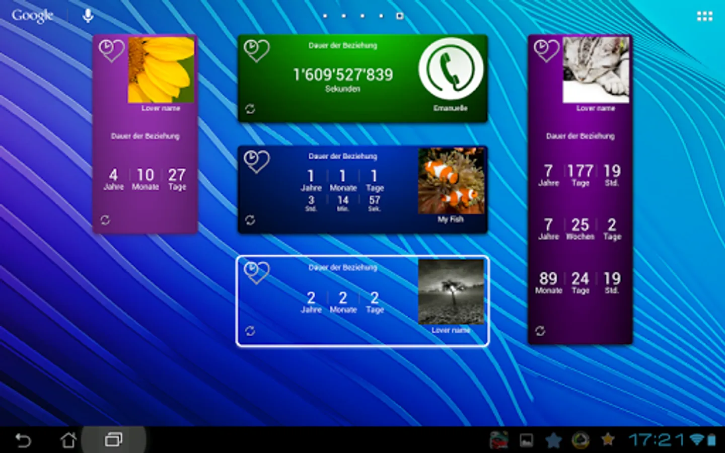 Keywords: LoveClock, Timer, LoveTimer, Duration, Love Duration, Love, Clock, Relation, Relationship, Widget, Marriage, Engagement, Birthday