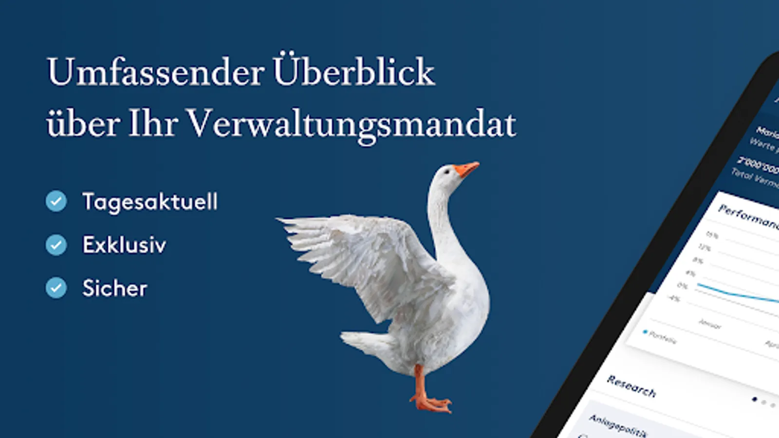 Whenever you want and wherever you are: With just a few clicks, you can obtain a comprehensive overview of your management mandate that is independent of the custodian bank and a deeper look into our analysis work. You can see how your portfolio is made up and in which companies you are invested - updated daily with the reported performance.