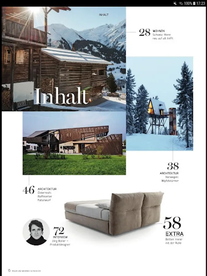 The most widely read Swiss home magazine deals with the topics of architecture, living and design every month. Carefully researched, competently written and perfectly visualized, commented on and illuminated, SPACE AND LIVING on an average of over 160 pages of architecture and living experiences in Switzerland. Convince yourself and download the free edition 6 • 7/19 as a sample.
