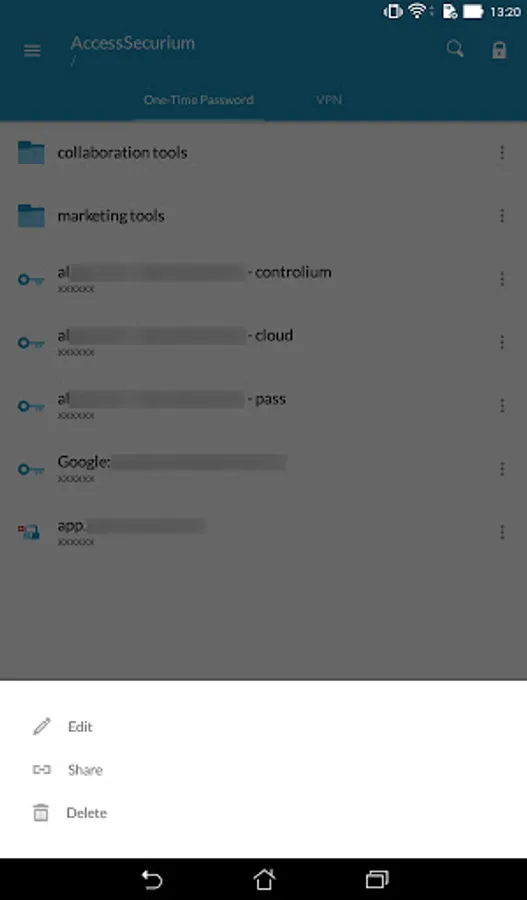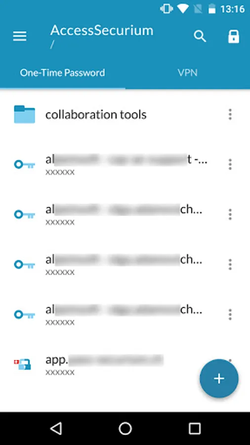 AccessSecurium™ was initially developed as an authenticator app for the protected SWISS SECURIUM® platform for enterprise communication and collaboration, but now it can be also used as a stand-alone application for storing and managing time-based one-time password tokens (TOTP) for two-factor authentication (2FA).
