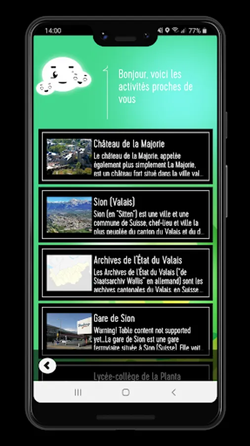 As soon as your companion is activated, you will be notified by notification of the main sights and / or things to see, things to do, near your trip.