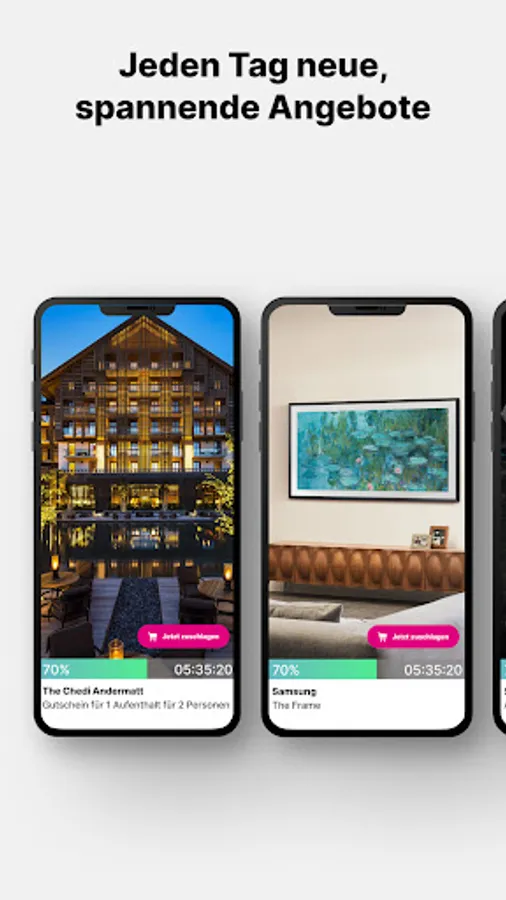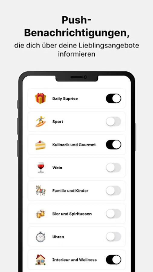 Find selected shopping pearls in different product categories every day and, thanks to personalized push notifications, be informed when we have a suitable offer for you!