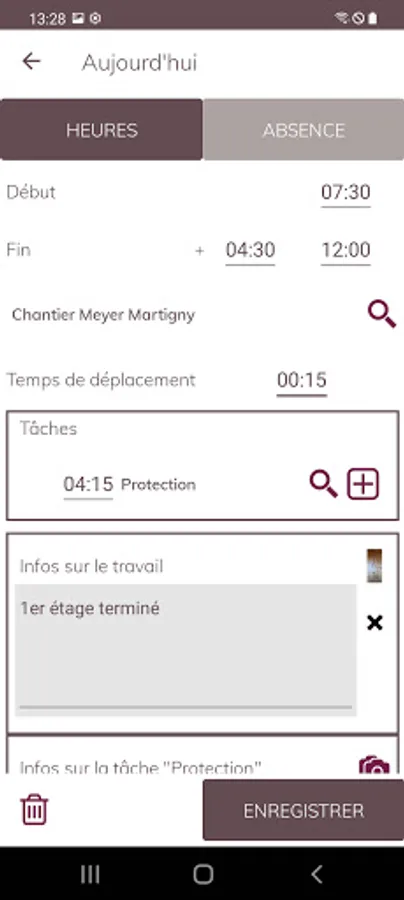 - Entry of working hours, absence time by worksite/project and travel time, breakdown by task/activity