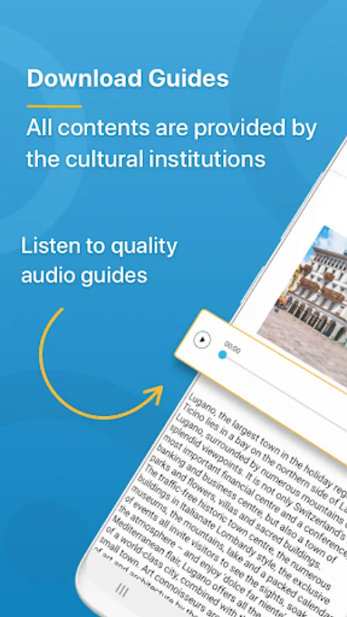• Download audio guides of exhibitions and sites of historical or artistic importance directly to your smartphone, avoiding any roaming costs