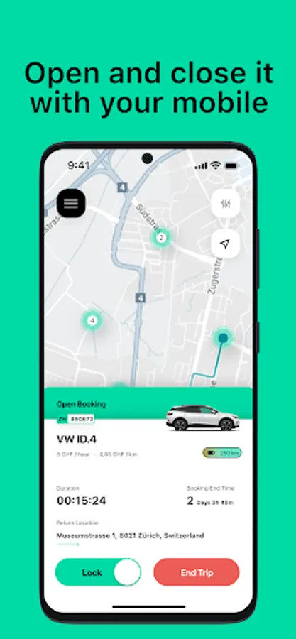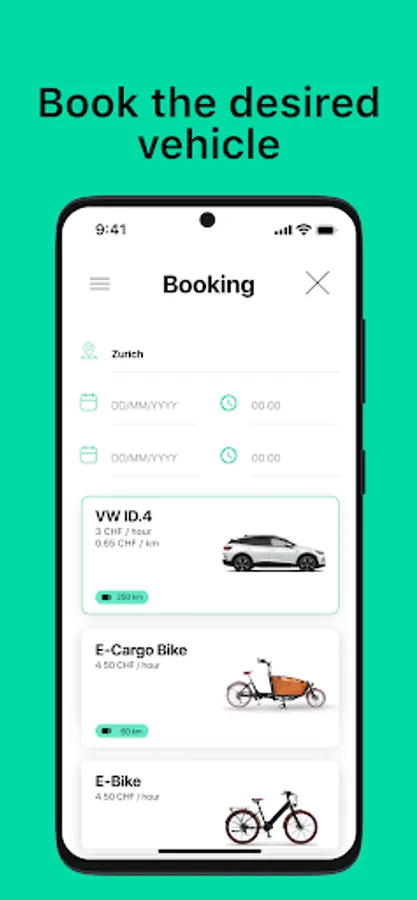Simply download the app, register and book the desired mobility solution with just a few clicks via the app. Whether car, e-bike, or e-cargo bike - with the allride app, the smartphone becomes your vehicle key.