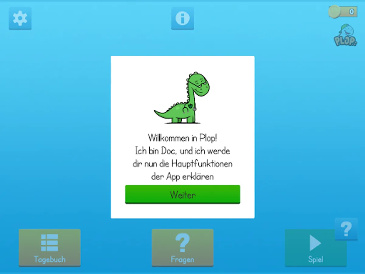 The dino "Doc" explains to you how the "plop" works, then you can try it yourself and write down in a journal how it goes.