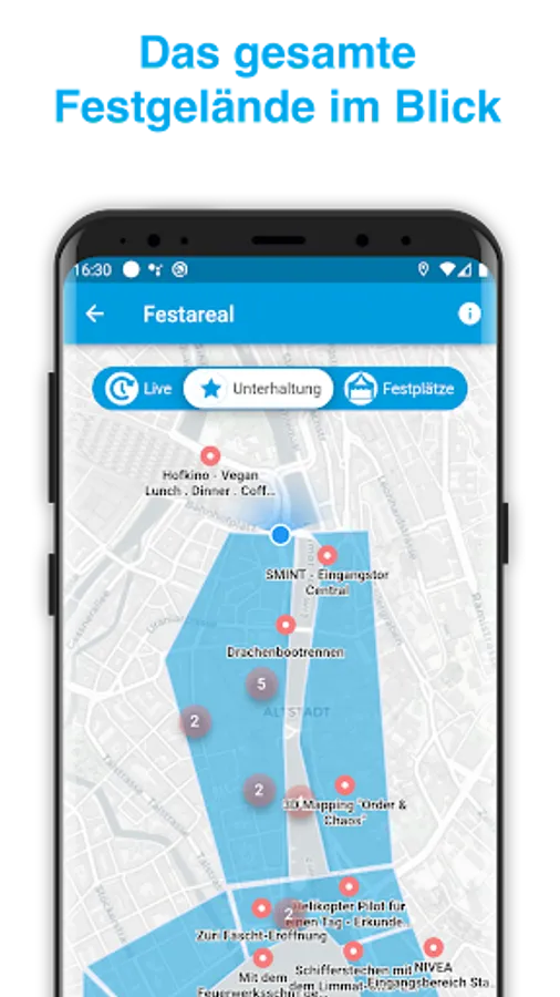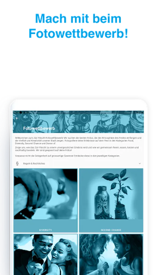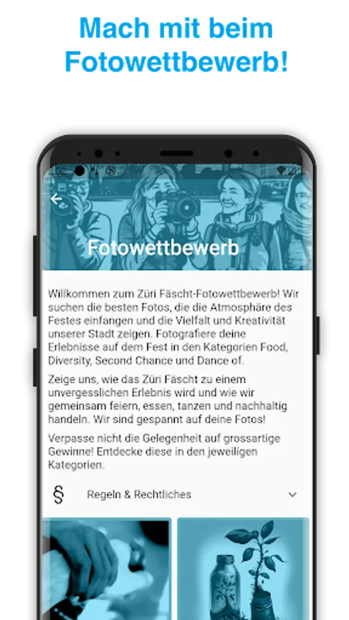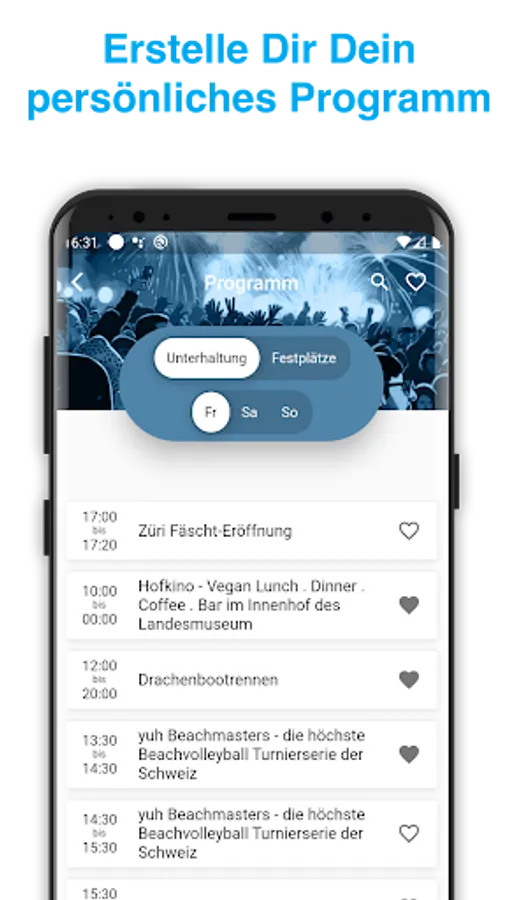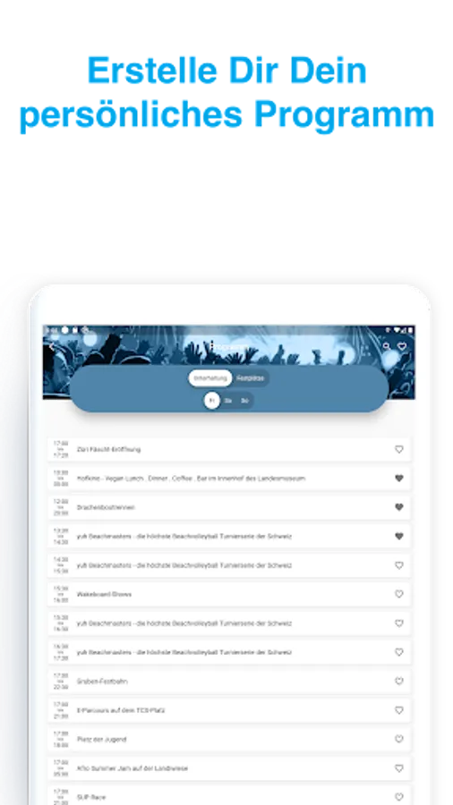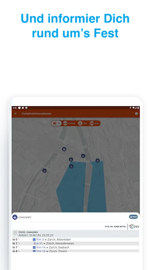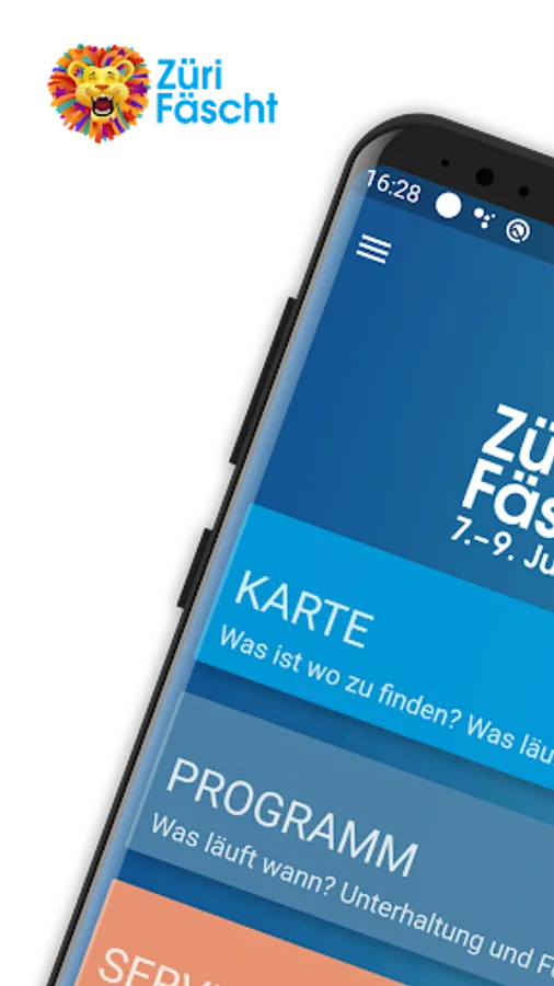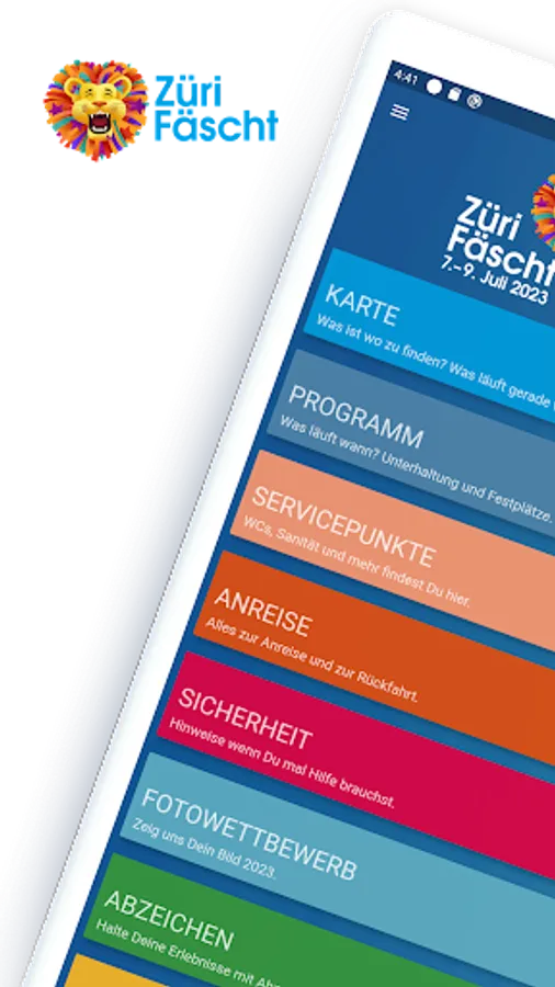 The Züri Fäscht app informs you about the program with easy access to the schedule, it lets you experience Züri Fäscht playfully and keeps you up to date.