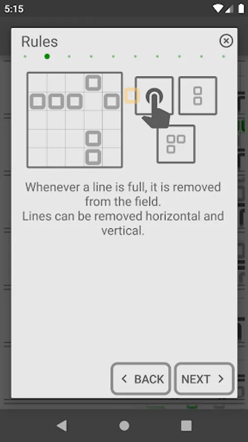 If you fill a line (row or column), the line gets removed from the field. The more lines you remove at once, the more points you earn.