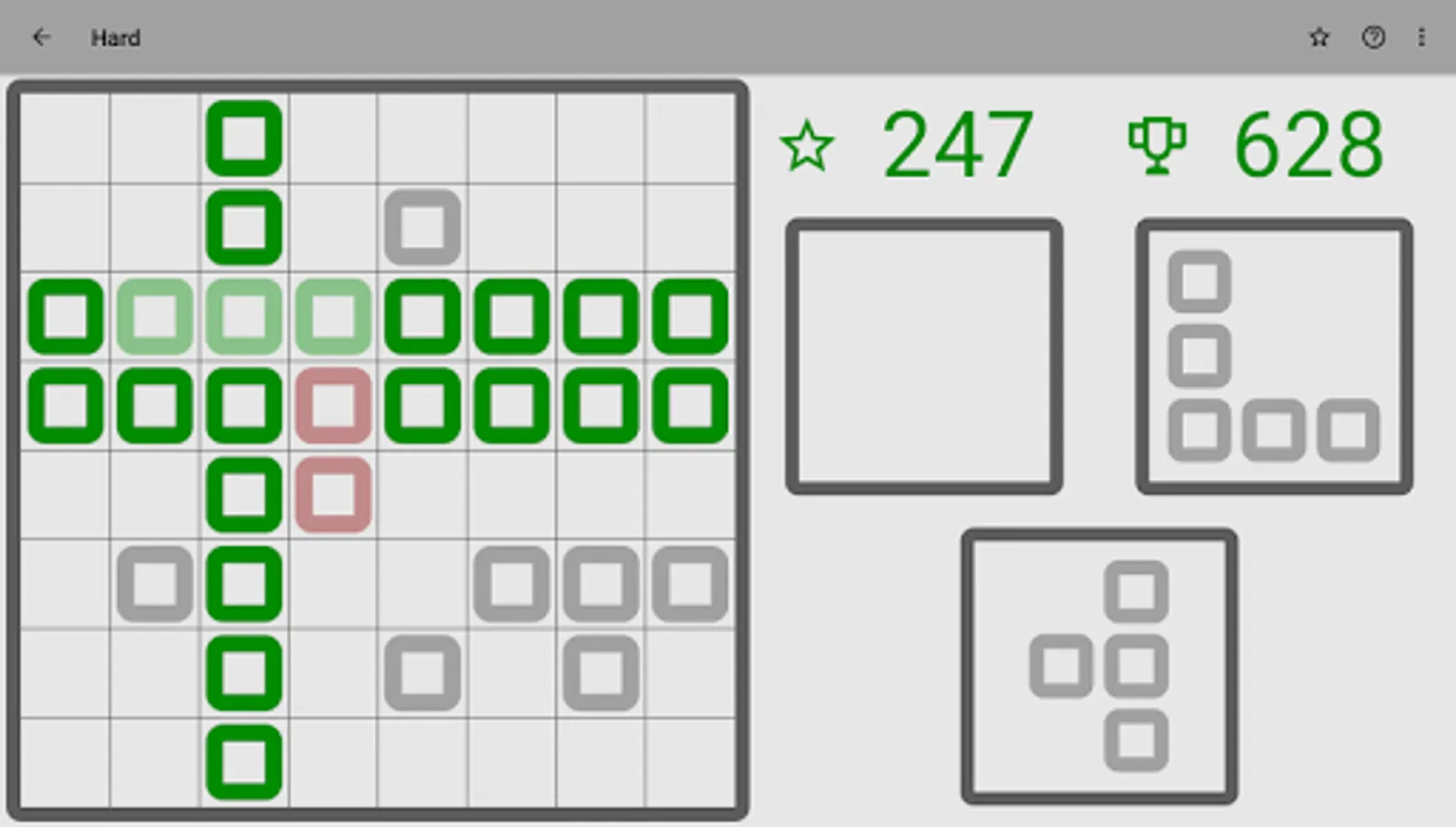 In the lower difficulties, you will have a help that shows you, which lines are removed, when you hover over with a piece. In the upper difficulties there is no help on that.