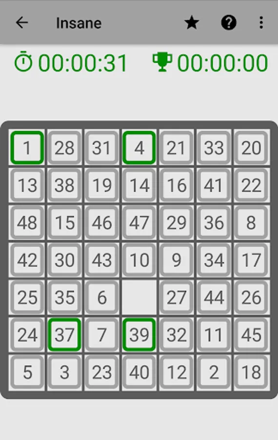 This game is generated completely random, with the condition of not having any number on its correct position.