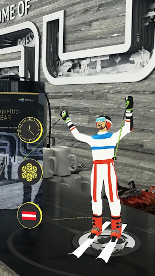 Winterolymp is an Augmented Reality application inviting you to explore the Swiss Engadin mountains around the prestigious city of St. Moritz. Visit various locations such as mountain stations, bars, or restaurants and unlock amazing experiences using your mobile device. Get ready to live a unique adventure!