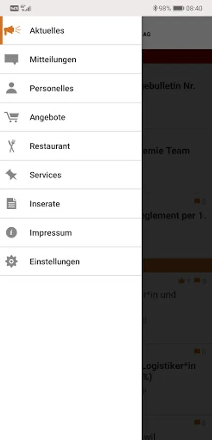 - Restaurant: All relevant content relating to the staff restaurant, including the option of ordering menus (only in Neuendorf).