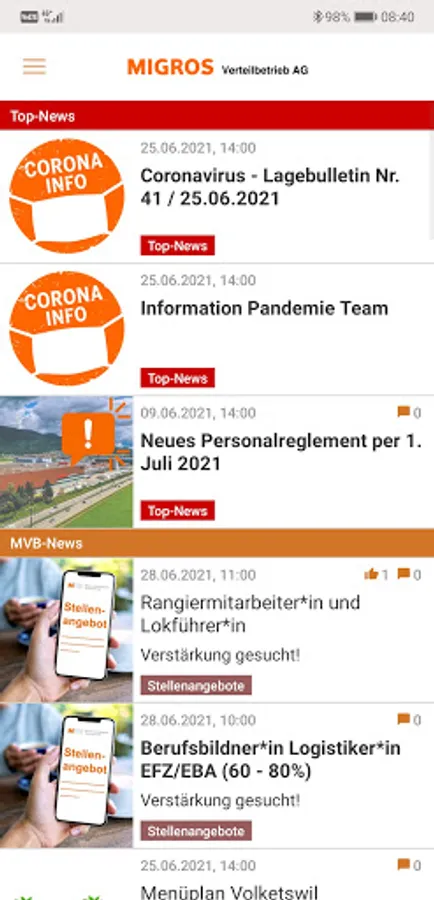 The Migros Vertriebsbetrieb AG (MVB) app provides quick, interactive and uncomplicated information to employees at all company locations.