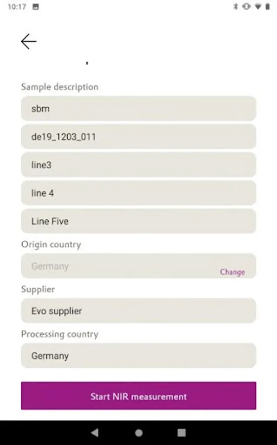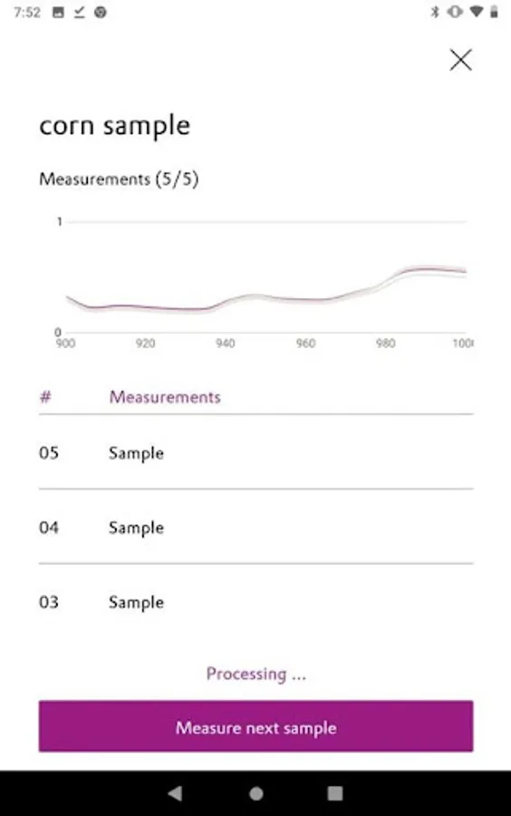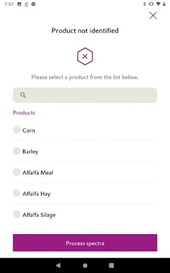 - Measure NIR spectra of feed or raw material samples using connected device
