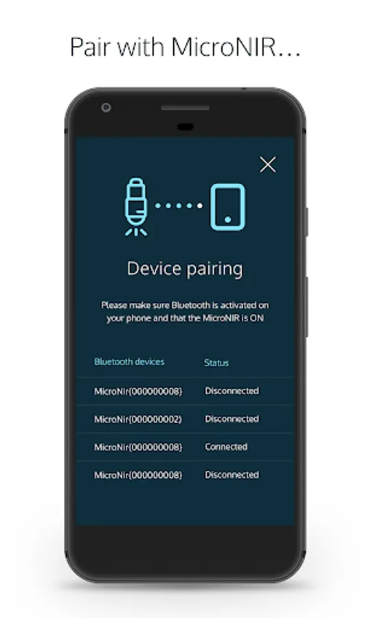 The NIRLAB app analyses and identifies substances with their near infrared spectra. Powered through advanced algorithms and a cloud solution for swift data processing, the app connects with a MicroNIR portable scanner to acquire the spectra.