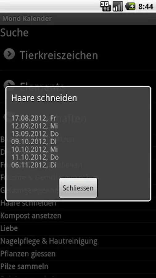 New with a searching function, which allows you to search for a specific characteristic e.g. best date to cut hair.