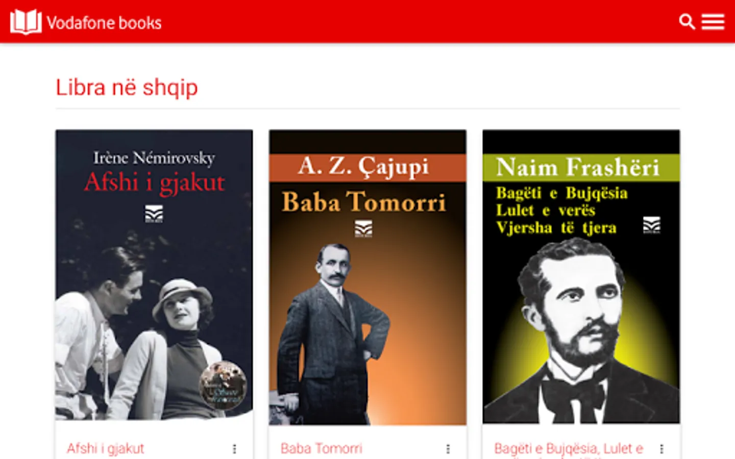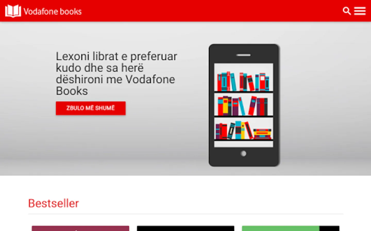 Përmes aplikacionit më të ri VodafoneBooks, ju mund të përzgjidhni librat tuaj të preferuar nga letërsia e huaj dhe shqipe dhe ti lexoni ato online në çdo kohë dhe kudo ndodheni nëpërmjet celularit apo tabletit tuaj.