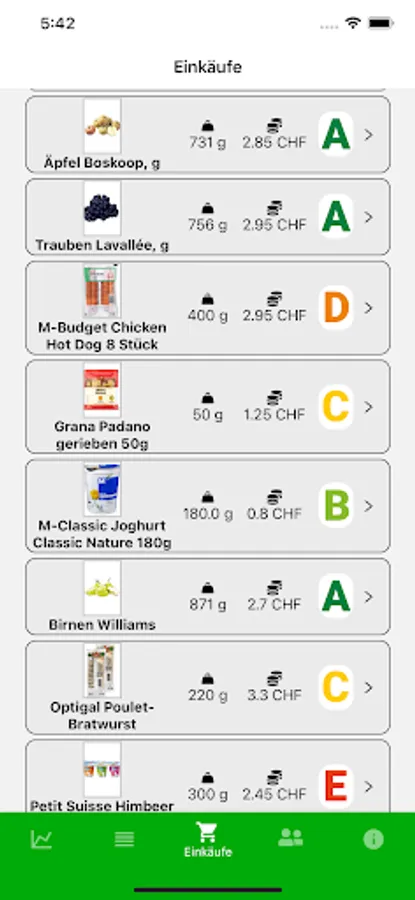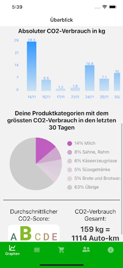 You can connect your Migros and Coop loyalty cards to the app to automatically find out more about the ecological footprint of your purchases. Your purchased products are automatically identified and linked to research-based and up-to-date CO2 values of these foods. In this way, you automatically learn more about the ecological effects of your grocery shopping behavior without any effort.