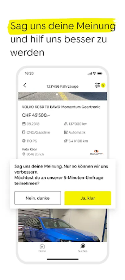 It is an application for experimenting with new features that can be integrated/implemented in the AutoScout24 app. And the special thing: we develop them together with you.