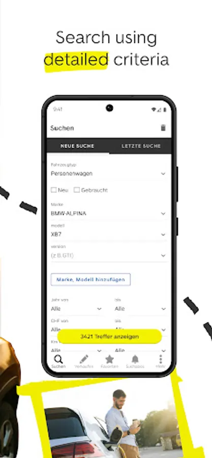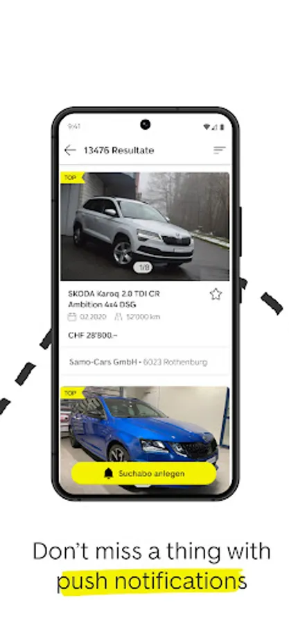 We at AutoScout24 offer you countless offers for the purchase and sale of your new or used car in Switzerland. From the affordable small car for the city to the spacious SUV for the family to the exclusive sports car, your every wish will be fulfilled. With more than 20 years of expertise, we make buying and selling cars and used cars fast and easy for you! You want to learn more? Then find the most important features of our app in detail here.