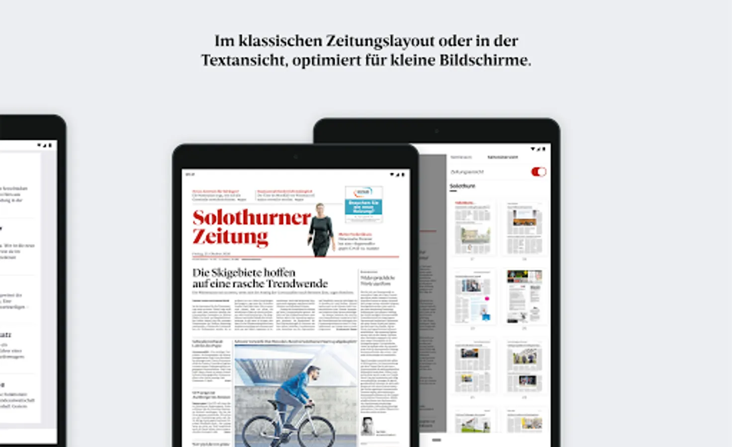 Read the current newspaper editions of the “Solothurner Zeitung” comfortably on your smartphone and tablet. You can use the newspaper layout or the mobile reading view, optimized for smaller screens.