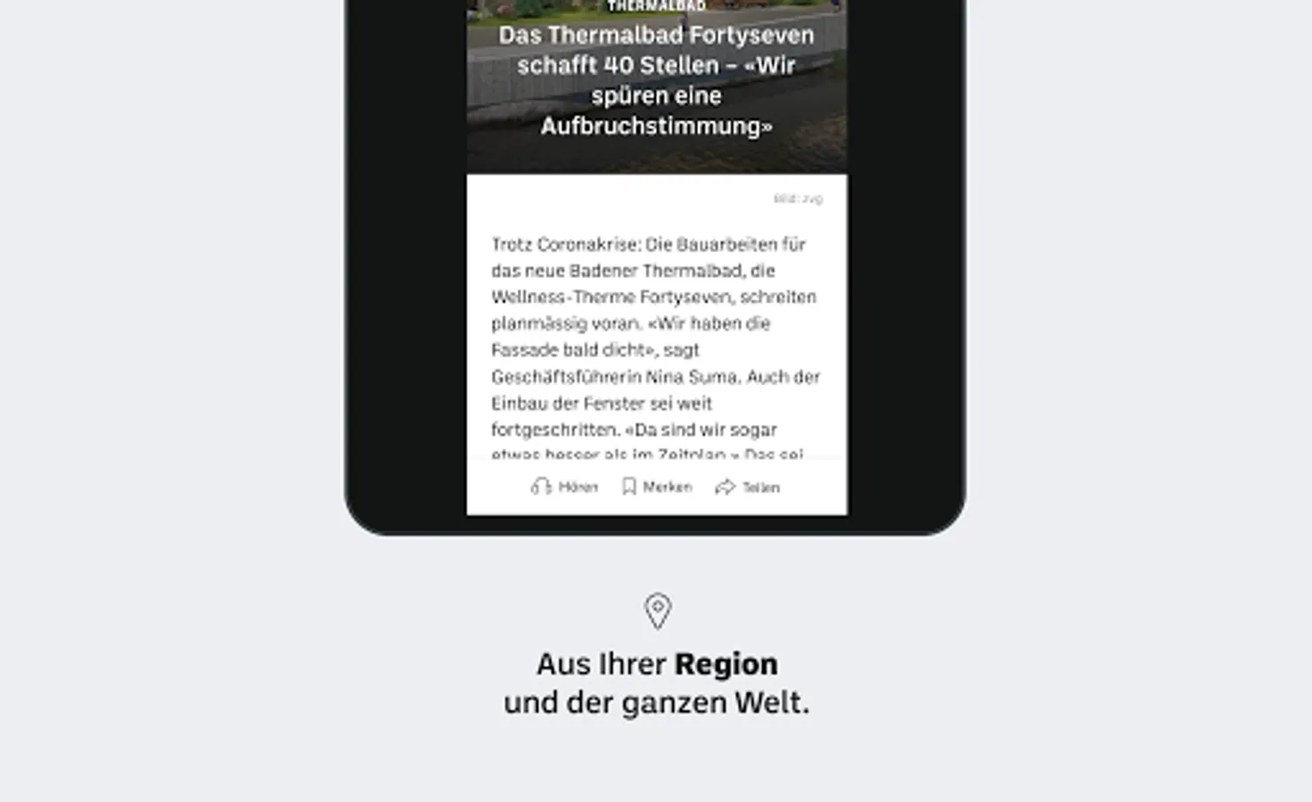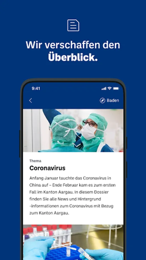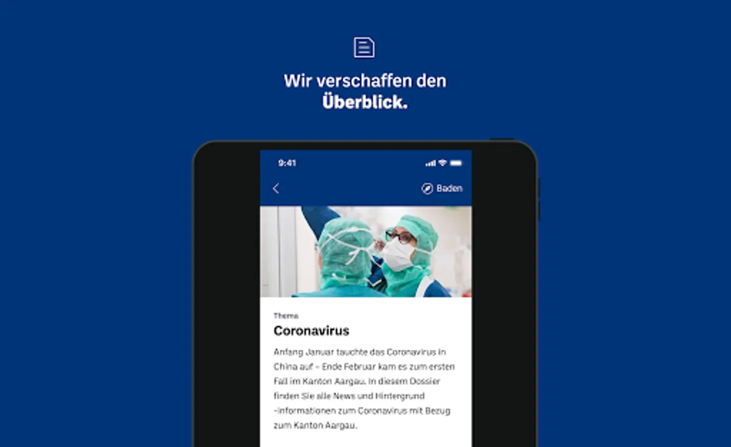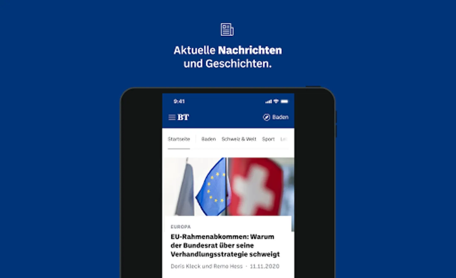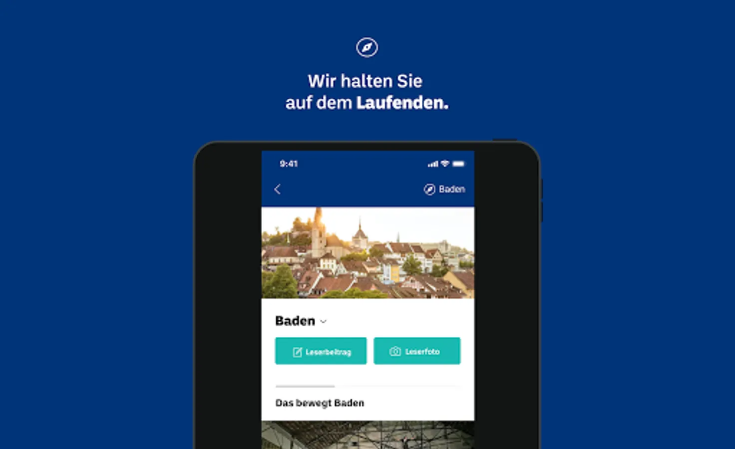 In the news app of the "Badener Tagblatt" you can read the most important news from politics, business, sport and culture on your smartphone or tablet. Our reporting focuses on events in the Baden region, in the canton of Aargau and in your community. Trustworthy and reliable.
