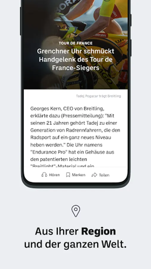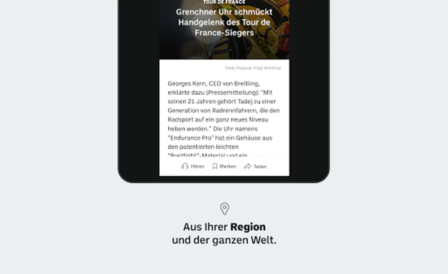 In the news app of the "Grenchner Tagblatt" you can read the most important news from politics, business, sports and culture on your smartphone or tablet. Our reporting focuses on events in the Grenchen region, in the canton of Solothurn and in your community. Trustworthy and reliable.