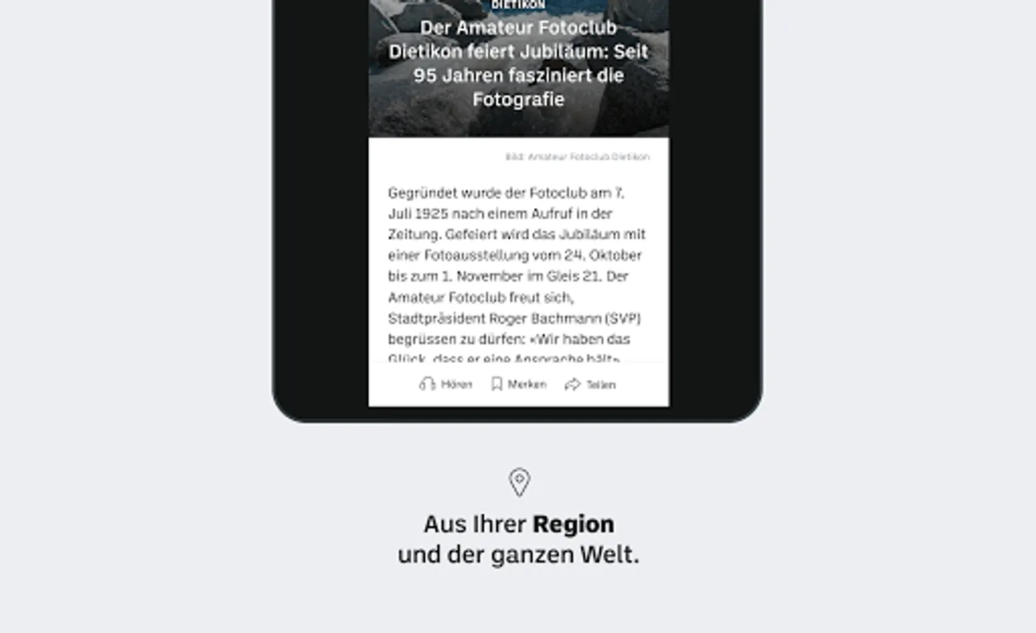 In the news app of the "Limmattaler Zeitung" you can read the most important news from politics, business, sport and culture on your smartphone or tablet. Our reporting focuses on events in the Limmattal region and in your community. Trustworthy and reliable.