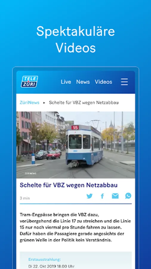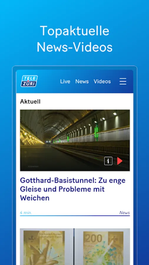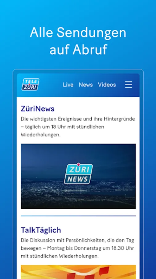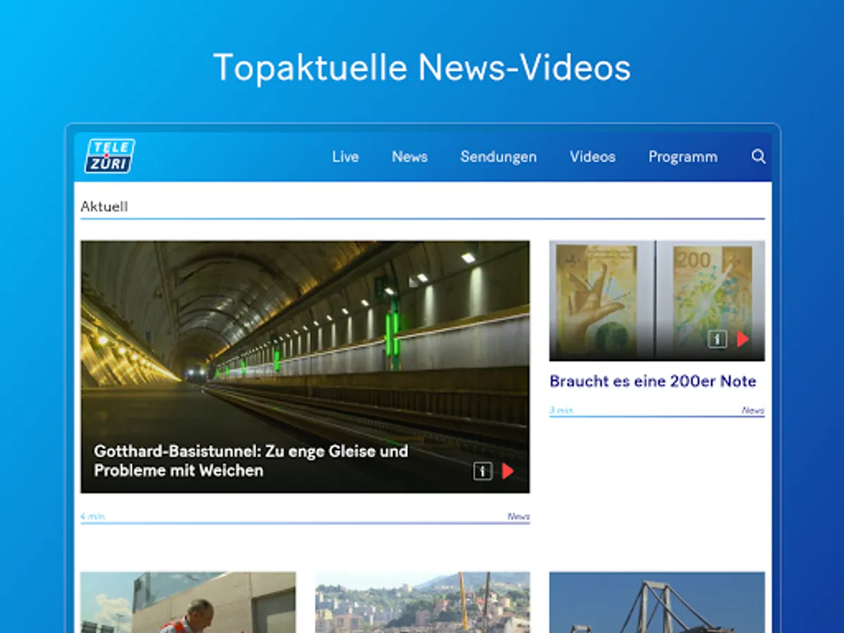 With the TeleZüri app gives you access to live streams of major events, our videos and from the entertainment area. For this you can retrieve all the TV shows in the archive so easily live TV. Information on current topics by subscribing to pay push service.