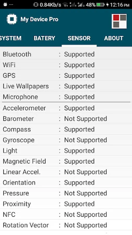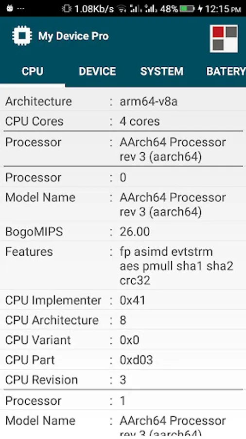 It detects the central processing unit, RAM, motherboard chipset and other hardware features of your Android smartphone and presents the information in simple tabs view.