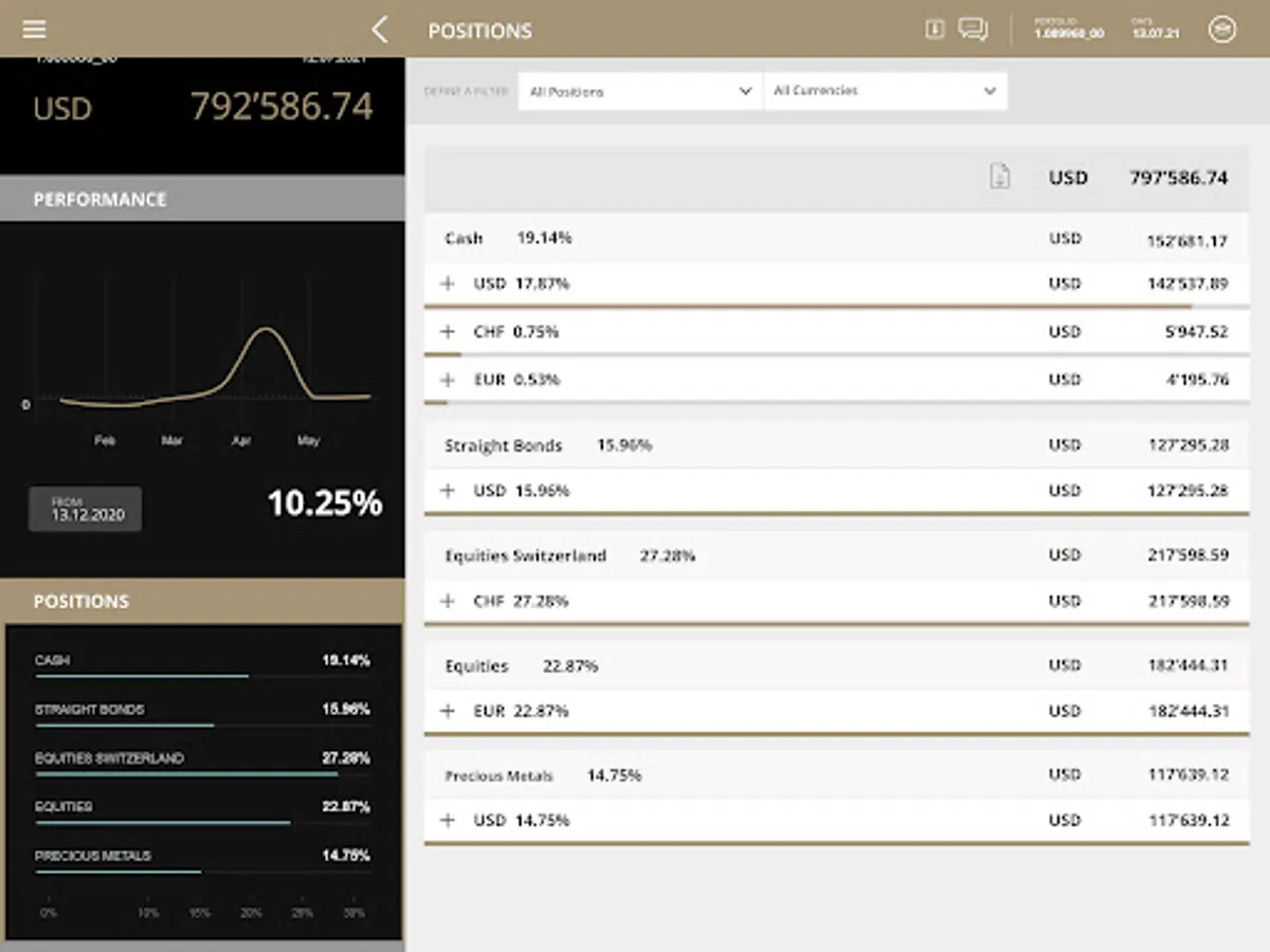 Get a clear and detailed overview of your positions. Transactions and performance.