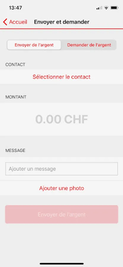 1. Open BCJ TWINT and select the "Send and request", "Send money" or "Request money" function.