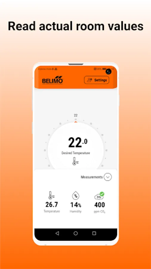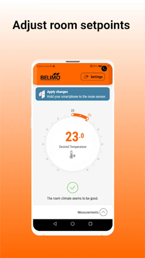 The Belimo Display App is the most innovative way to access room sensors and room operating units from Belimo. The intuitive end-user app allows room values to be displayed and setpoints to be adjusted.