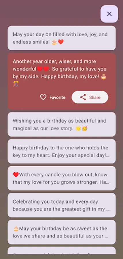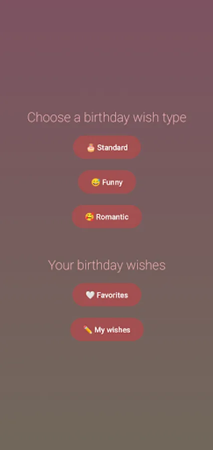 Welcome to the ultimate birthday wishes experience! Our app lets you dive into a treasure trove of heartfelt greetings. With a diverse array of categories like Funny, Romantic, and Standard wishes, you're sure to find the perfect sentiment for every friend and loved one. ♥️🎉