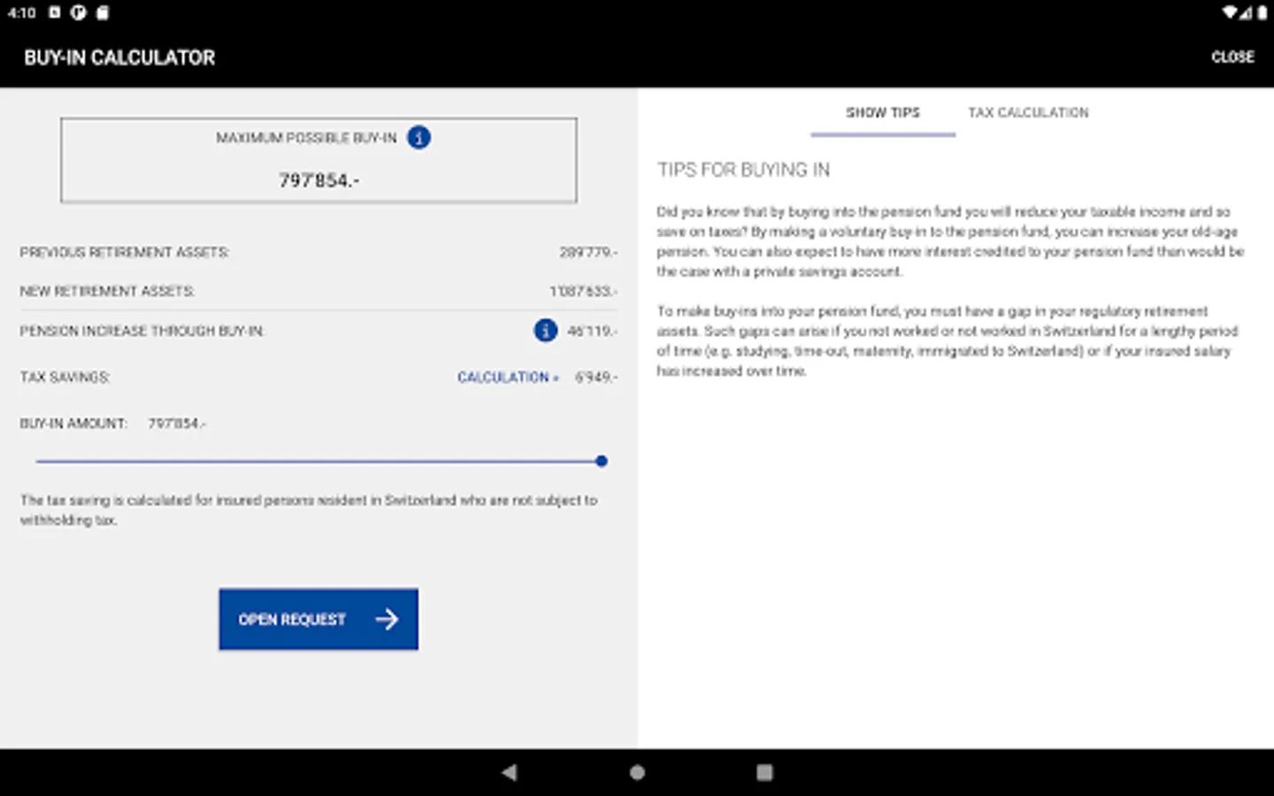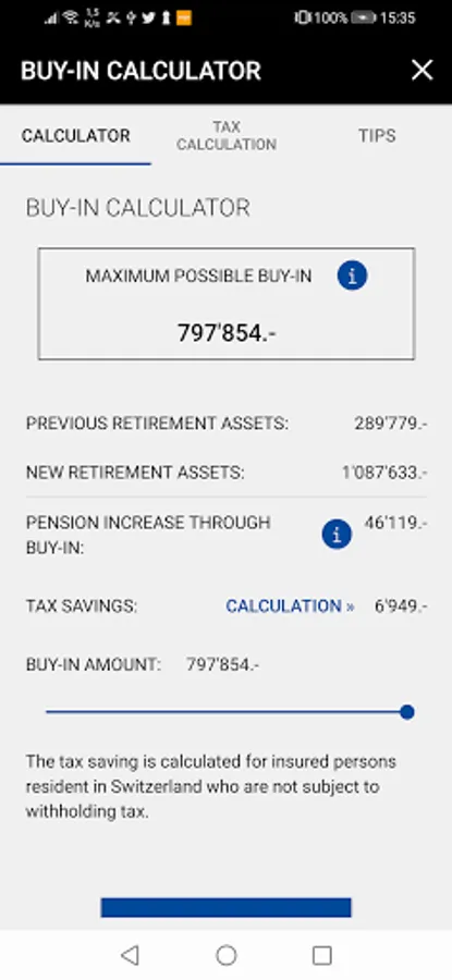 • Buy-in calculator with tax simulation