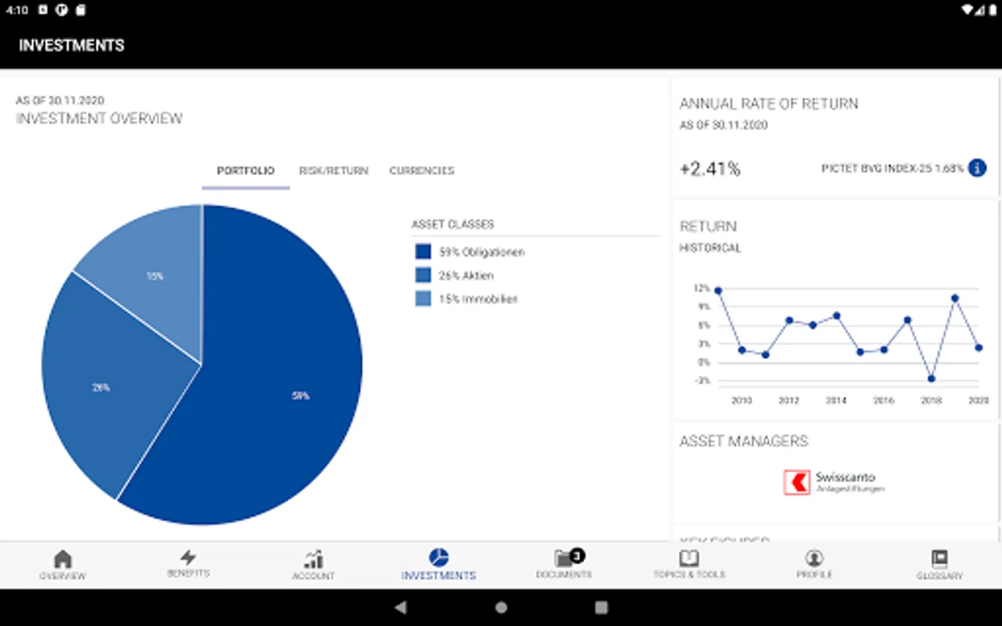 The Prosperita app is available for all active insured persons of a pension fund. With this user-friendly, comprehensive and innovative app, policyholders can access their personal pension data, carry out simulations and obtain information on pension issues at any time and from anywhere. The app is connected live to the Prosperita management system.