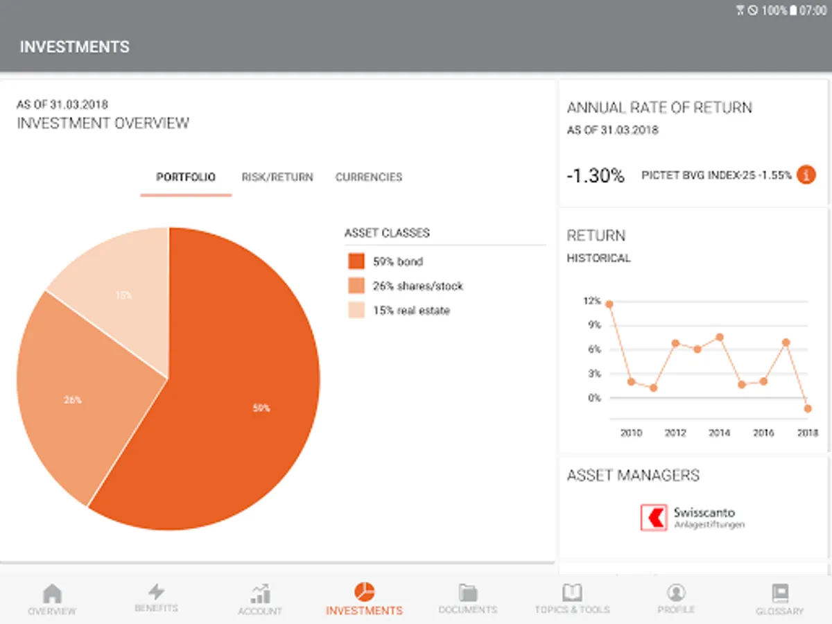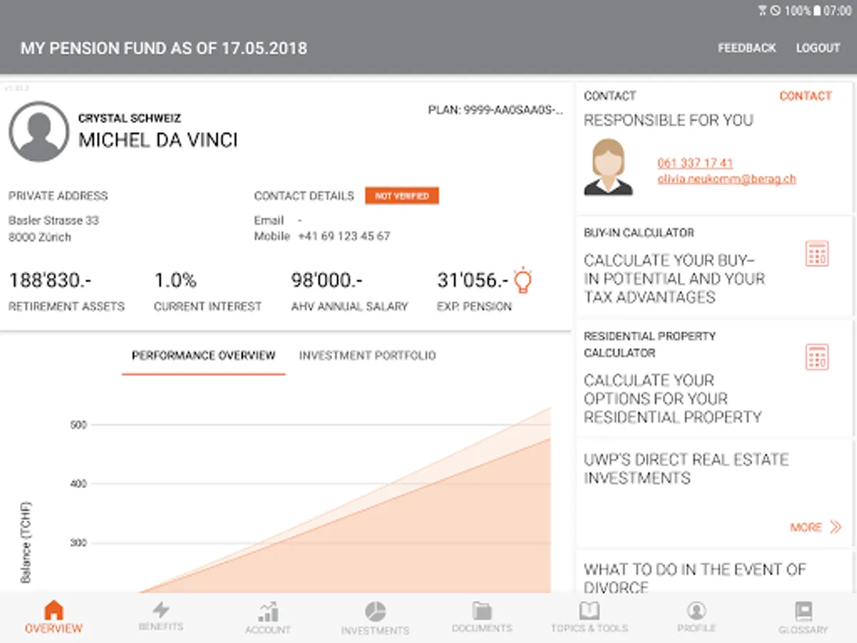 This app is available to all members of the Convitus collective foundation. With this user-friendly, comprehensive and innovative app, policyholders can access their personal pension data, carry out simulations and obtain information on pension issues at any time and from anywhere. The app is connected live to the Convitus management system.