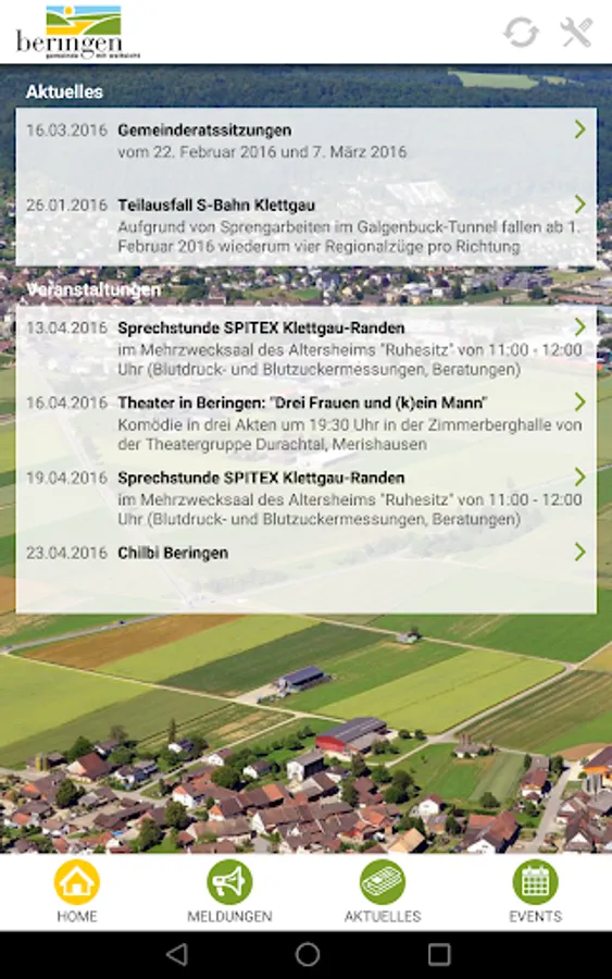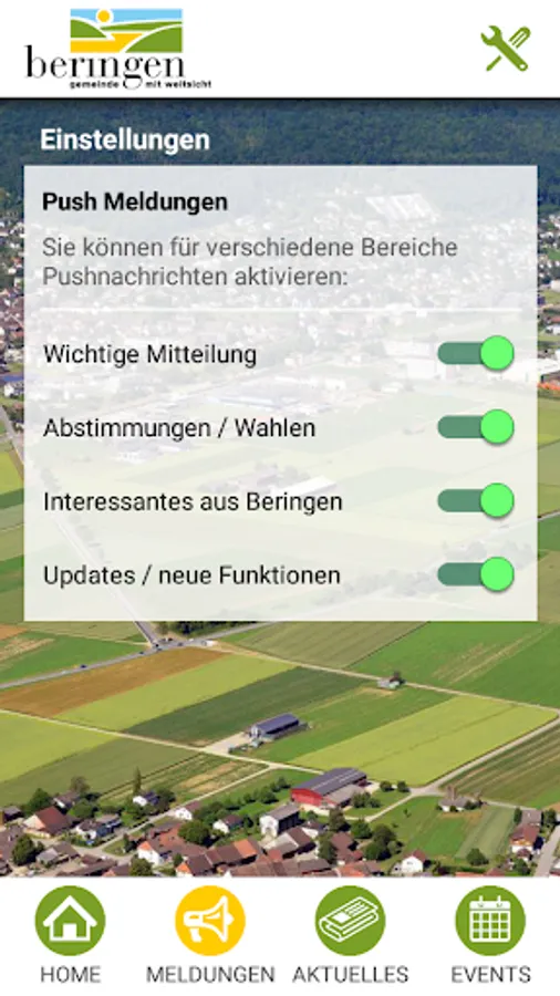The official smartphone app Beringen. Use the function to be automatically notified of important messages. Activate the Push messages and read updates and events so that you are informed about the community events.