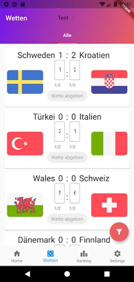 Bet2Gether is a betting game among friends for sports events. Create your own tip group.