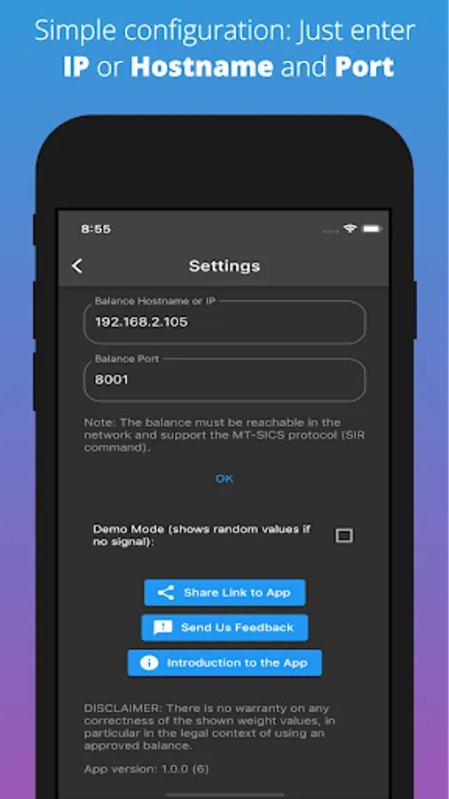 Using this app you can livestream the weight values of your balance on your tablet or smart phone.
