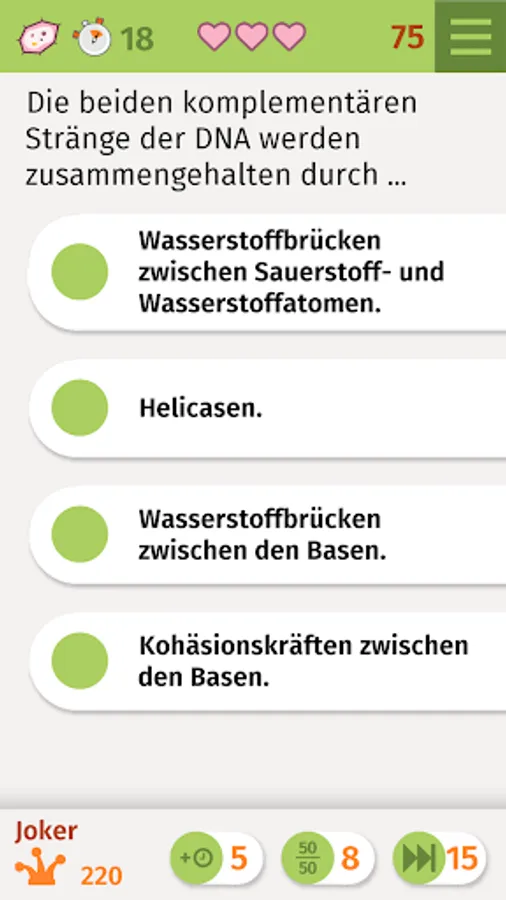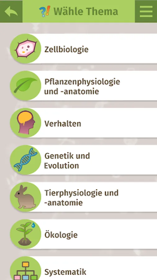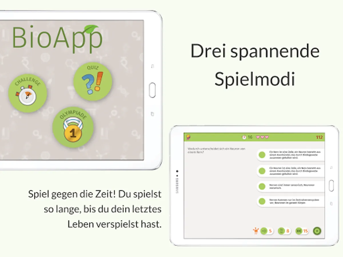 The BioApp gives you the opportunity to deepen your knowledge and Biology to consider. Whether you study for an exam or just set a new high score only want that BioApp offers the right mode.