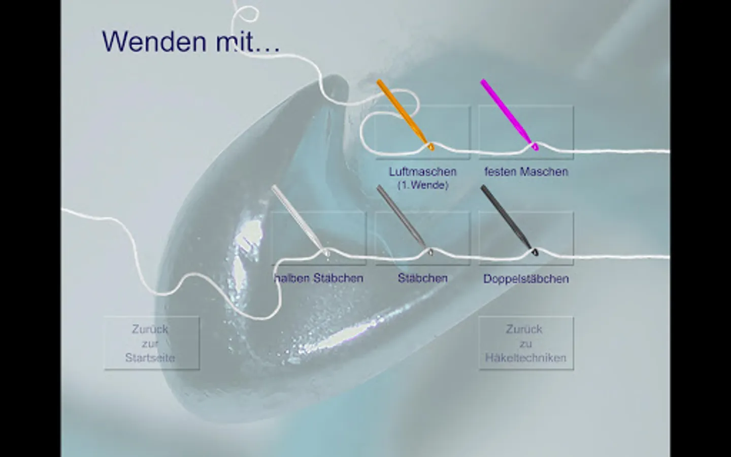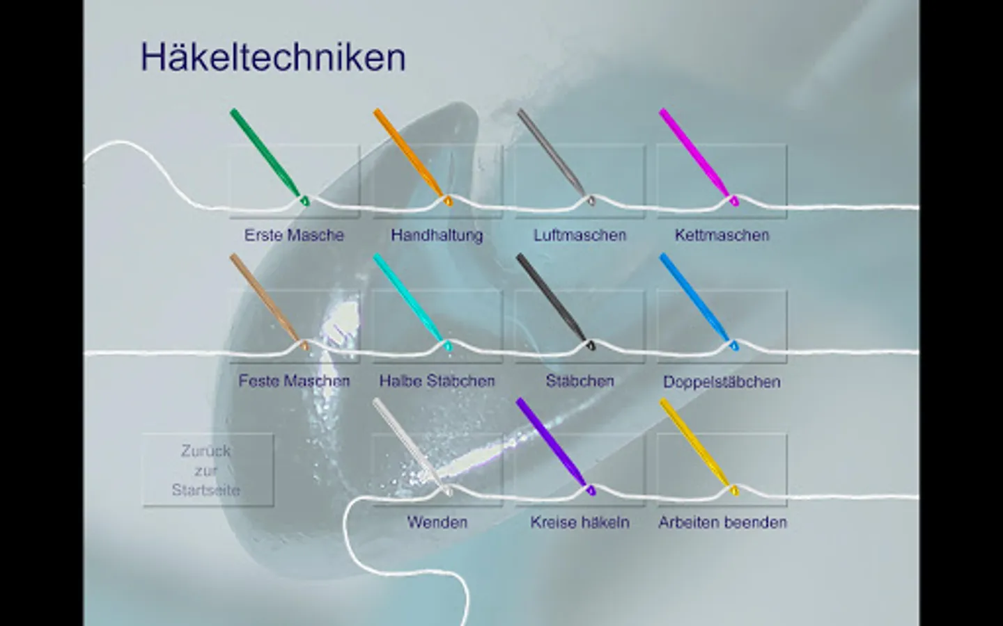 26 instructional films on the topic of «Basic crochet knowledge», crochet techniques from the first to the last stitch and sewing. In addition to the crochet techniques, the design of different crochet areas and the crochet script are shown.