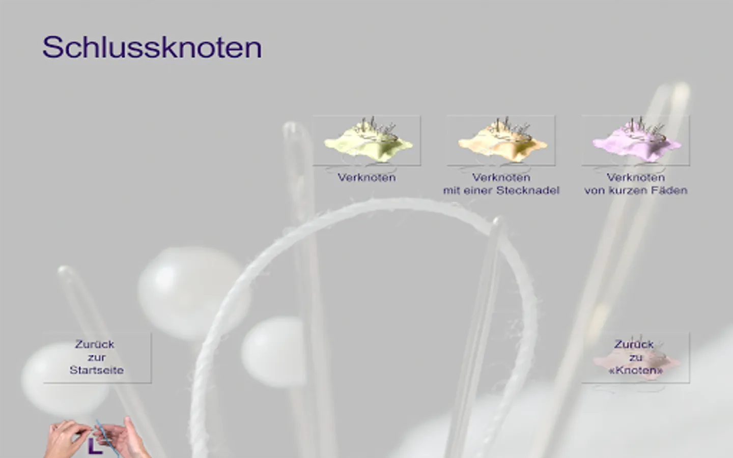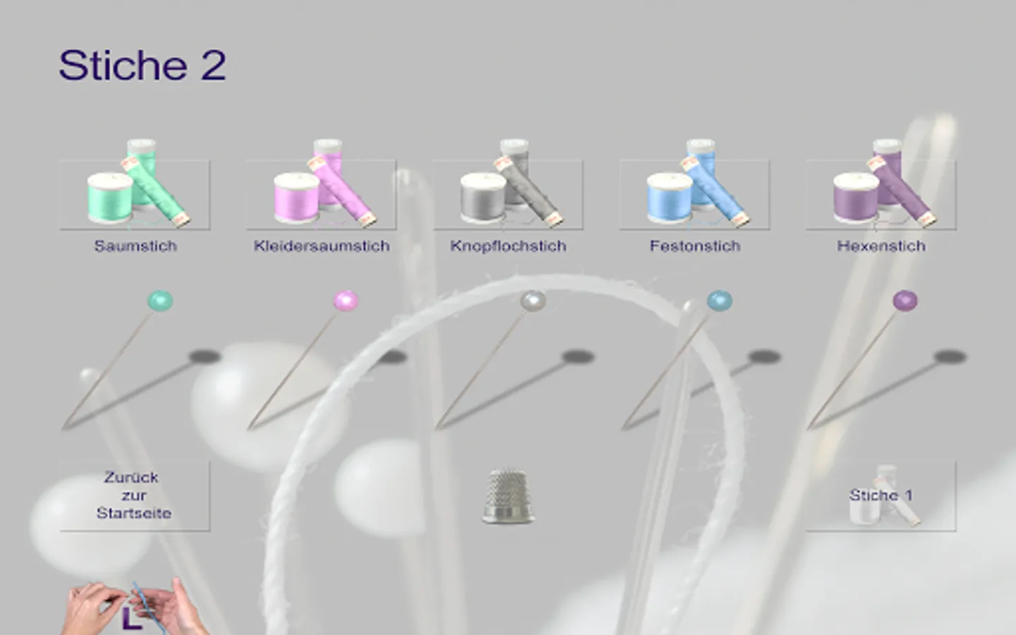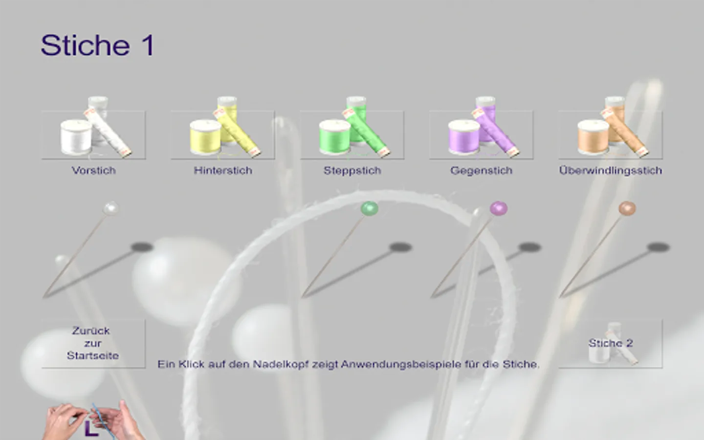 In the chapter “Stitches”, the films also have - with a click on the pin head - separately selectable slide shows with application examples.
