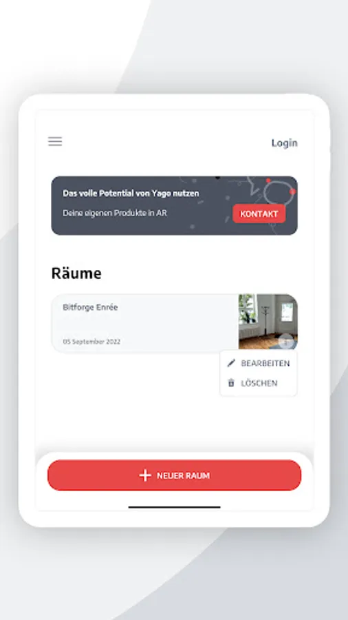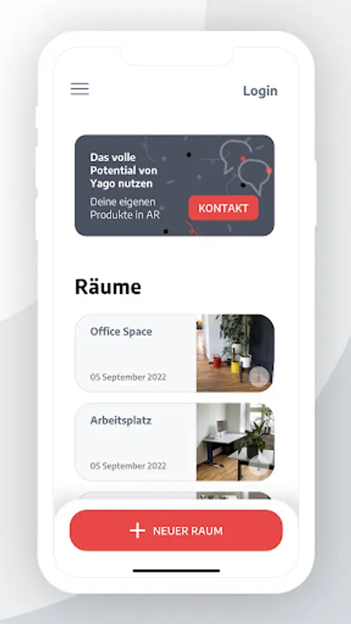 Yago Scenes is the AR sample case for field staff and makes consultations easy. Set up rooms in AR, compare different variants with each other, save them precisely and continue working on them the next time you visit - that's how consultations work today!