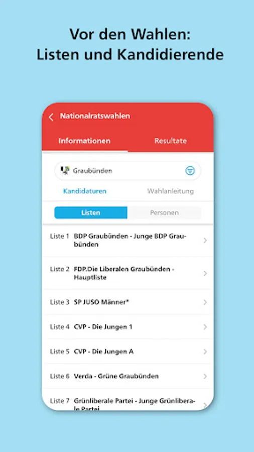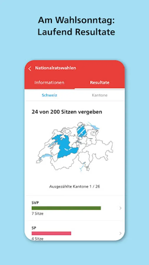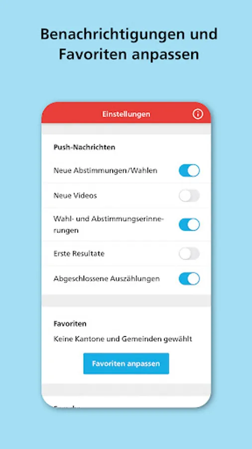 - Selection of the cantons and municipalities about whose votes the app informs you