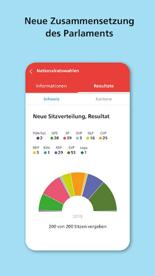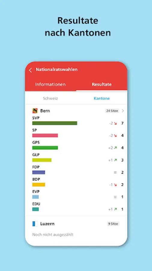 Follow the updated interim results from 12 noon on the Sunday of the election or voting. Or have the official final results sent to you immediately by push.