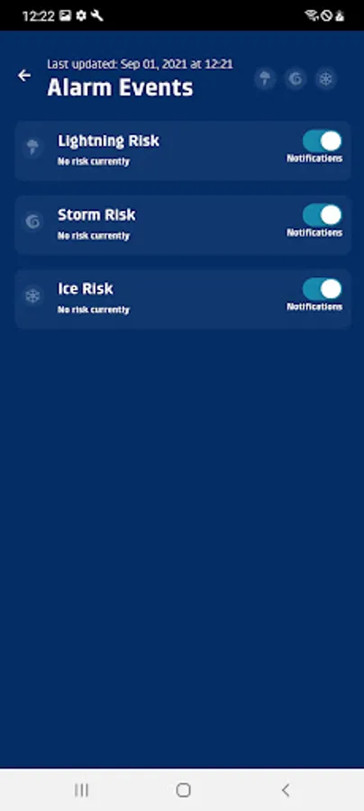 - Notifications in case of lightning, storm or ice fall/ice throw risk