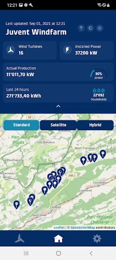 Experience the Juvent Wind farm and get live information about the wind turbines and the current alarm events.