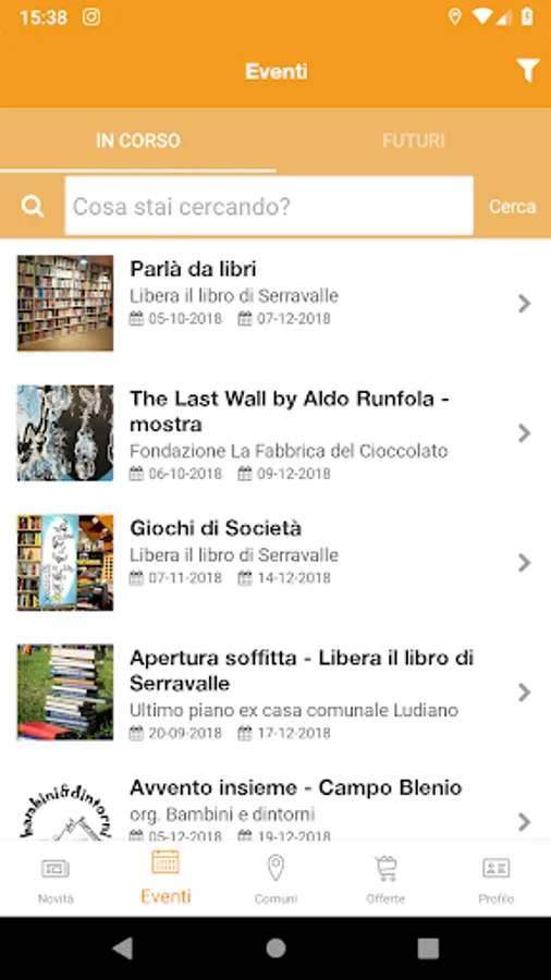 Thanks to a complete and updated calendar, the app can inform you about sporting and social events, exhibitions, concerts, exhibitions, meetings, commercial promotions, crafts, courses and more.
